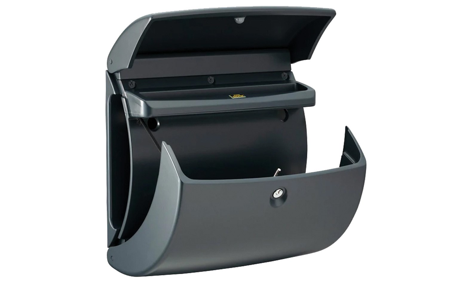 Kunststoff-Briefkasten mit matter Oberfläche, Einwurf-Format DIN C4, Größe 400x380x178mm, Öffnungsstopp, intergriertes Zeitungsfach, Farbe granit.