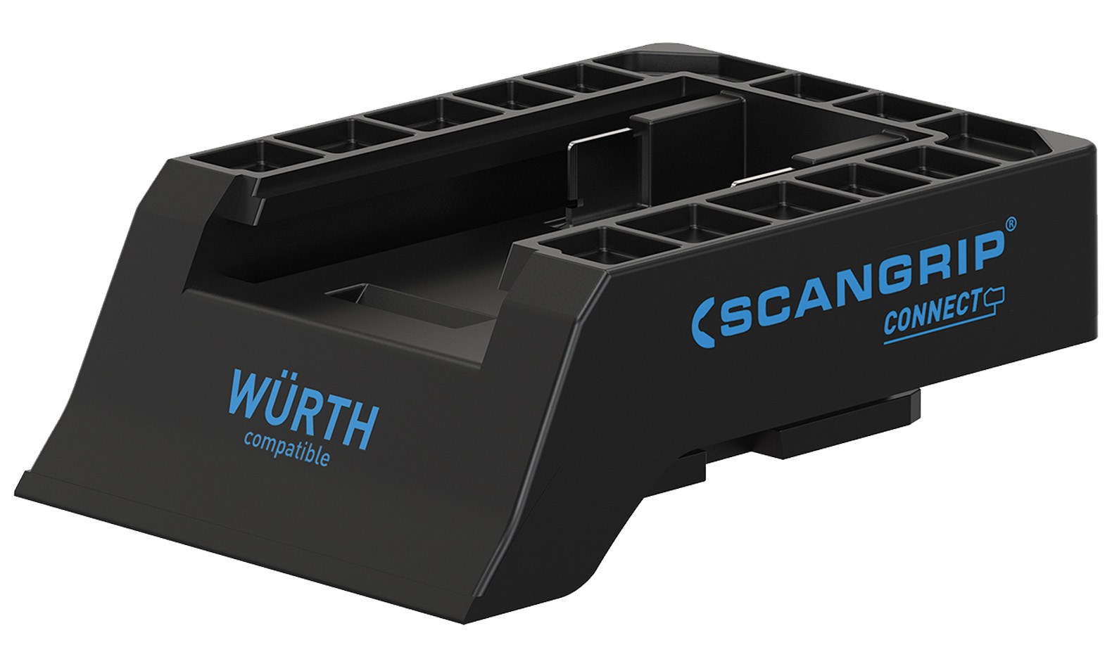 Durch Verwendung des Steckverbinders SCANGRIP CONNECTOR ist es möglich, alle CONNECT-Leuchten mit einem 18V-Akku von Würth zu betreiben.