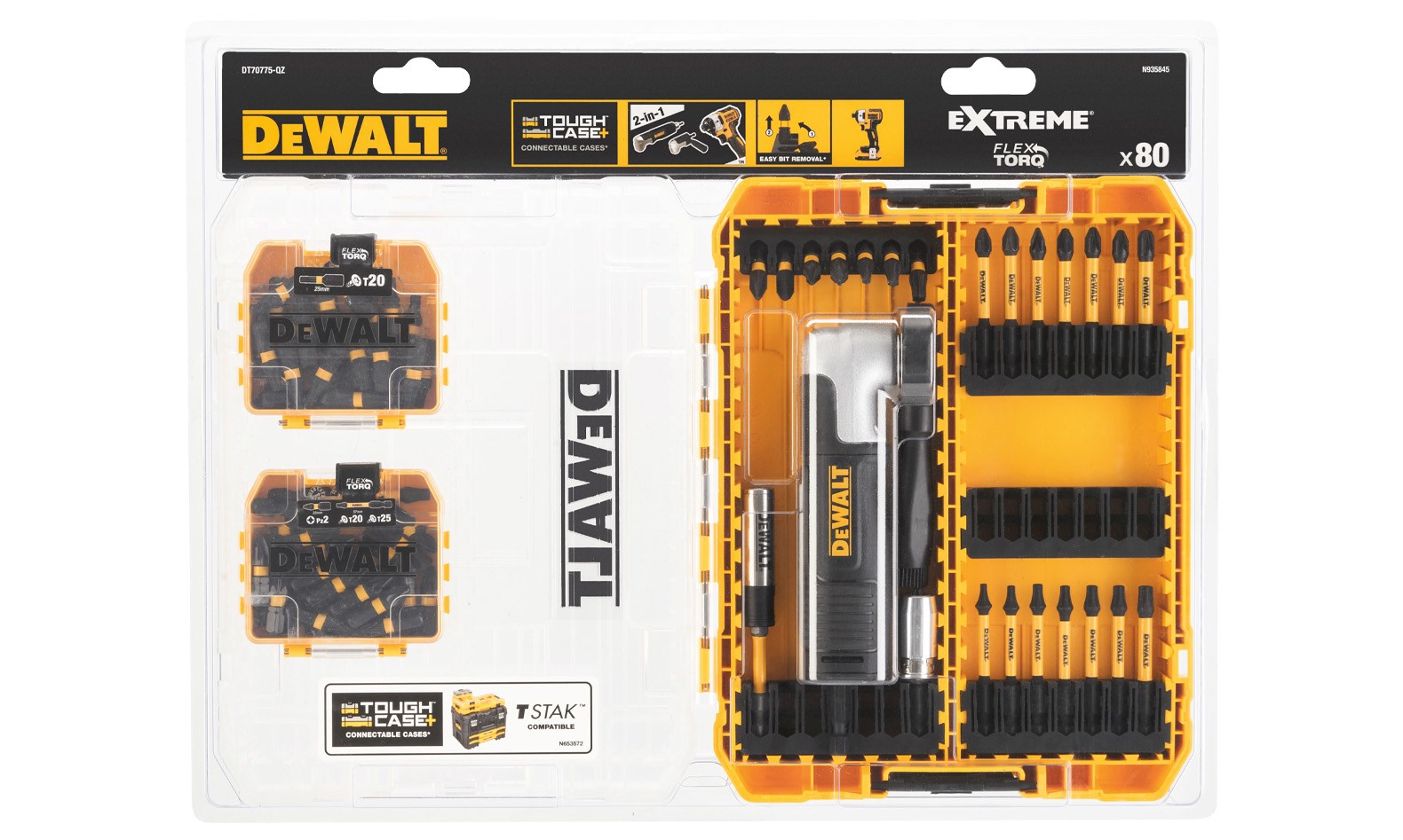 Das DEWALT DT70775 Mix Bit Set wird in einem TOUGH CASE+ geliefert. Enthält: