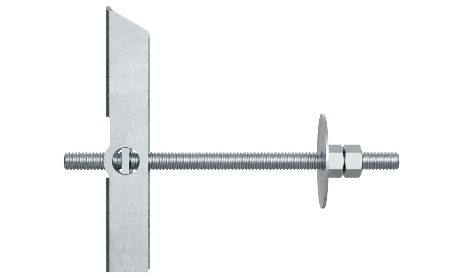 Der Holraumdübel für unterschiedliche Plattenstärken und groß Nutzlängen, hohe Tragfähigkeit durch gute Lastverteilung des Kippbalkens, einfache Montage durch selbstöffnende Spannfeder, hohe Flexibilität durch lange Gewindestange, geeignet für die Vorsteckmontage, Bohrernenndurchmesser 20mm, max. Plattendicke 55mm, min. Hohlraumtiefe 75mm, Dübellänge 100mm, Gewinde M8x100mm.