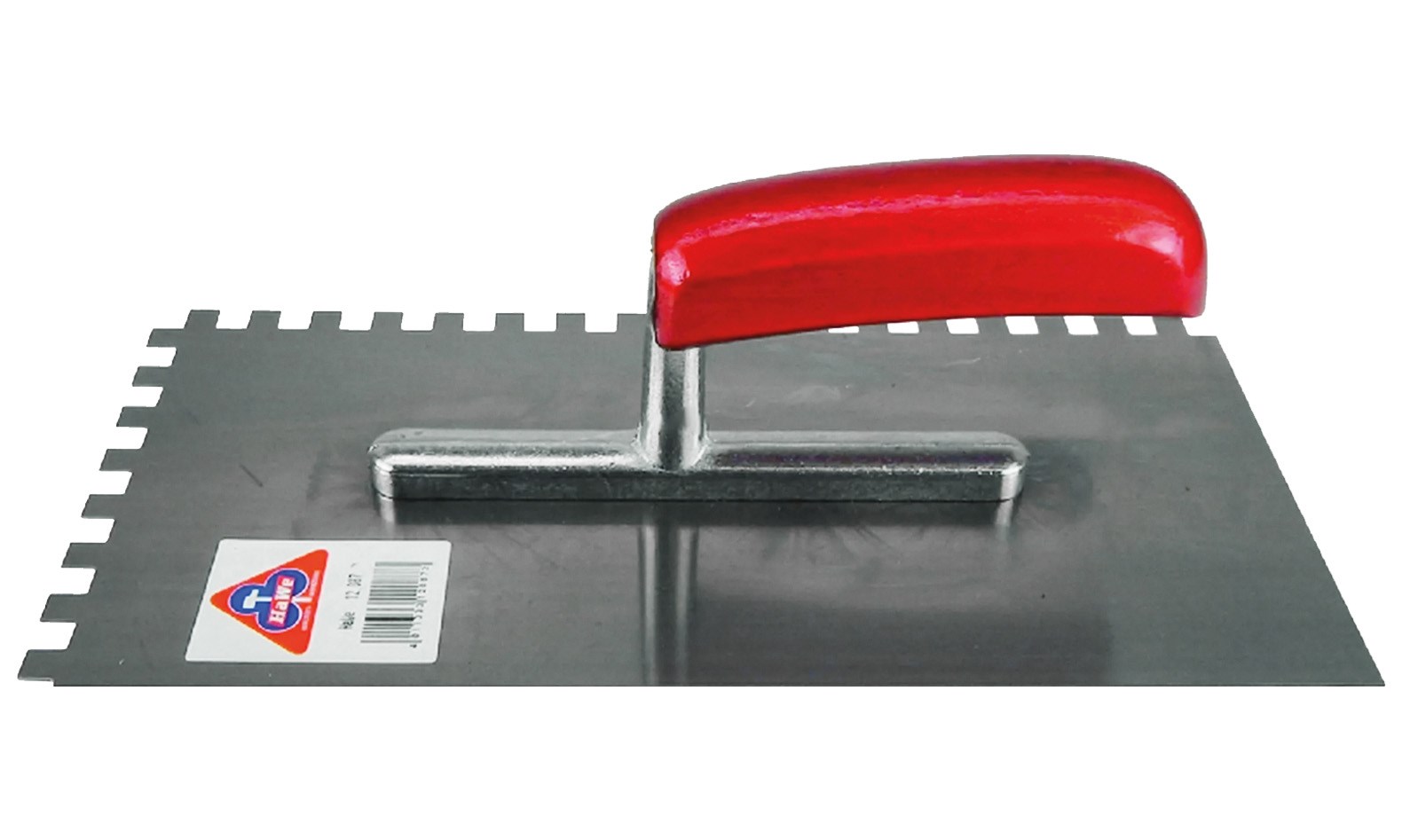 Mit Zahnung Viereck 8x8x8mm, Normalstahl, mit lackiertem Holzgriff, Länge 280mm, Breite 130mm, Stärke 0,7mm.