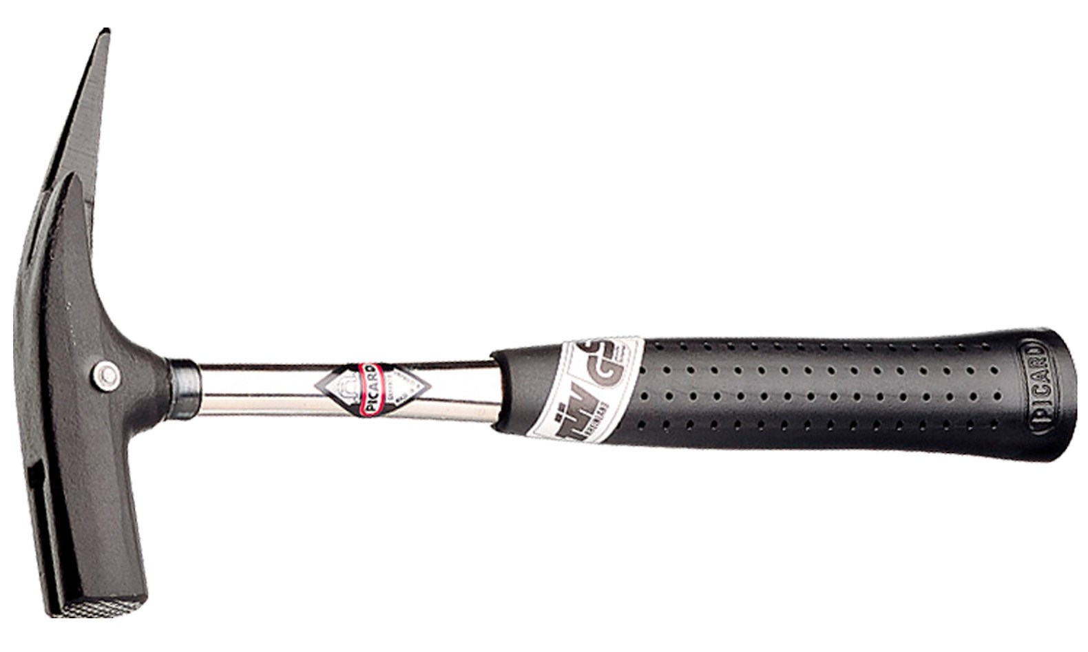 Latthämmer mit Stahlrohrstiel, GS-geprüfte Sicherheit, rauhe Bahn, ohne Magnet. Kopf schwarz pulverlackiert, korrosionsgeschützt, Aus legiertem PICARD-Spezialstahl, sorgfältig gehärtet und angelassen, mit Kopfsicherung, DIN 7239, 1 Komponenten-Griff traditionell.