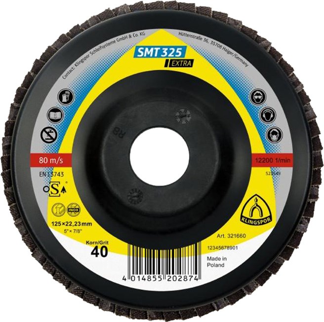 SMT 325 Extra mit aggressivem Zirkonkorund-Schleifkorn und glasfaserverstärktem Kunststoffteller ist ideal für das Schleifen von Edelstahl und Stahl. Er bietet universelle Einsatzmöglichkeiten und ein hervorragendes Preis-Leistungs-Verhältnis.