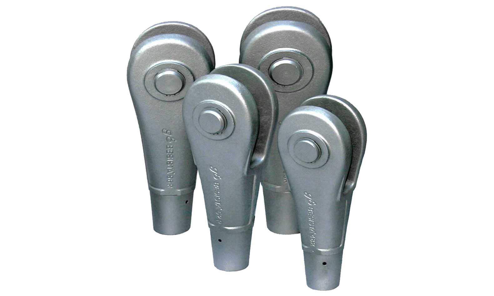 Die BESISTA®–Stabanker verbinden die Zugstäbe mit den Anschlussblechen. Sie bestehen aus besonders hochwertigem, sehr duktilem Sphäroguss EN-GJS-400-18-LT, mit garantierter Kerbschlagarbeit bei -20 °C. Dieser Gusswerkstoff ist für diese Bauteile besonders gut geeignet. (Design geschützt). Die 100%-ige Sicherung der Gewindeeinschraubtiefe durch das Kontrollloch ist einzigartig bei den BESISTA®-Stabankern. Deshalb sind Abdeckhülsen – die bei anderen Stabsystemen zur Sicherung der Gewindeeindrehtiefe notwendig sind – nicht erforderlich. Die filigran gestalteten Rippen an den BESISTA®-Stabankern und die sanften, fliessenden Übergänge von den Laschen in den Schaft, garantieren eine optimale Form- und Giesstechnik. Sie bilden gleichzeitig die Schlüsselflächen und verhindern das Verschleifen der Designkonturen. Die Rippen um das Kontrollloch bilden den Werkstoffausgleich. Mit den Schlüsselflächen an den Zugstäben und den Schlüsselflächen an den Stabankern als Gegenhalter, lassen sich die Stabsysteme optimal spannen. Besonders, wenn auf beiden Seiten gleichzeitig gespannt wird, können schon von Hand hohe Zugspannungen erzeugt werden, ohne dass sich die Stabsysteme oder die Anschlussbleche verwinden. Die patentierten, speziell gestalteten Innenlaschen der BESISTA®-Stabanker ermöglichen den Ausgleich von Achsabweichungen bis zu 2°. Damit werden Querspannungen weitgehend vermieden und Beschichtungen geschützt. Das sind grosse Vorteile beim Einbau.