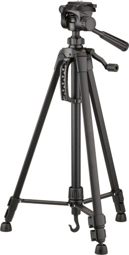 Stativ mit Spreizschutz und Kurbelsäule. Mit der Kurbelsäule können Laser exakt auf eine gewünschte Arbeitshöhe positioniert werden. Höhenverstellbar von 55 cm bis 140 cm. Stativbeine mit Gummikappen. 1/4"-Gewindeschraube.