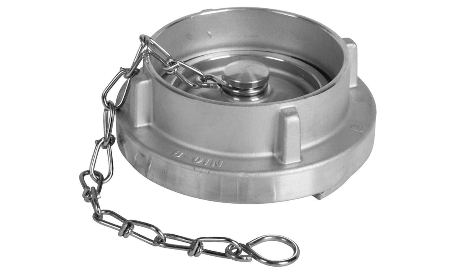 Aluminium, gegossen, Industriequalität für Bau und Gewerbe. Blindkupplung mit Kette. Storz-Größe B/75.