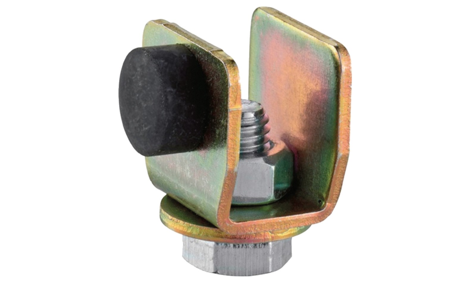 HELM 100 P Stopper gelb verzinkt, verhindert das Herausfahren der Rollapparate aus der Laufschiene. Zum alleinigen Abfangen der Schiebeflügel nicht geeignet !