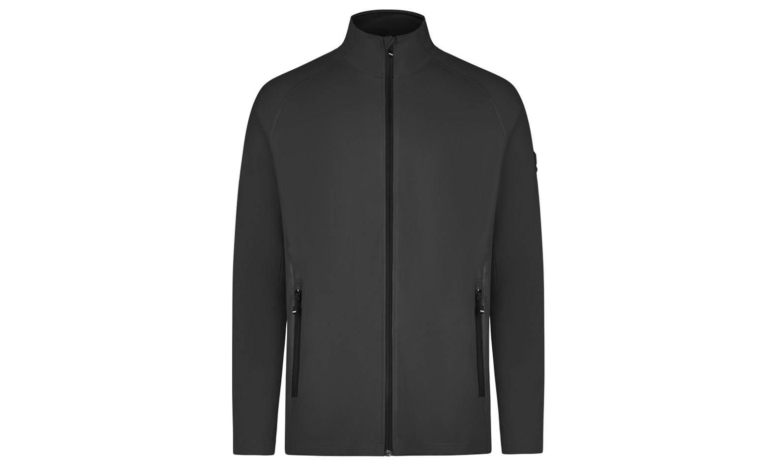 90% recyceltes Polyester, 10% Elasthan, 235g/qm, leichte Jersey-Fleecejacke, Raglan-Schmitt, ergonomisch perfekt, ideal zum Drunterziehen, kein Fusseln, YKK-Frontreißverschluss, Flatlock-Nähte, 2 geräumige Seitentaschen mit Reißverschluss, Farbe anthrazit.
