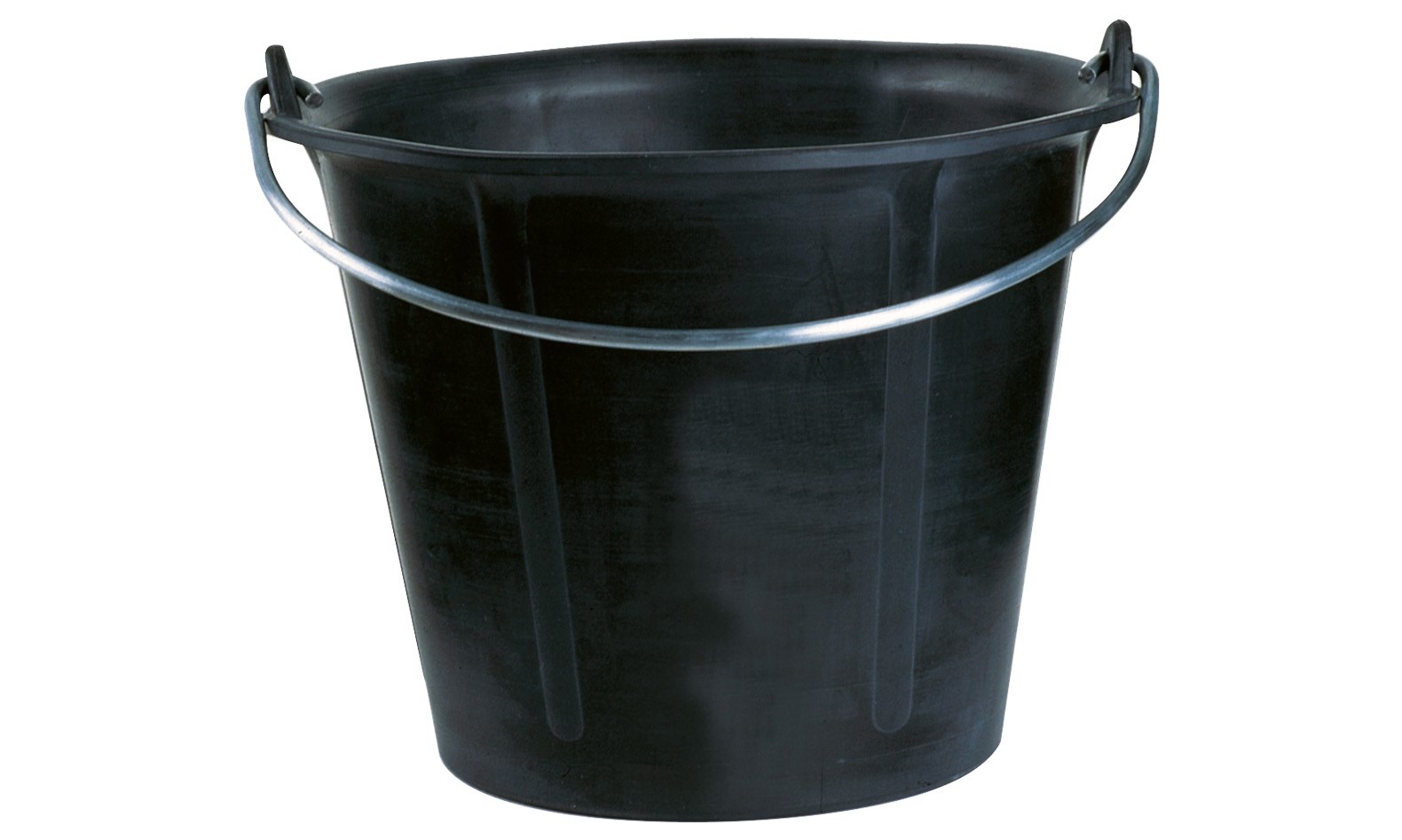 Extra stabiler schwarzer Baueimer aus Kunststoff, 12 Liter, 6,8 mm Drahtstärke.