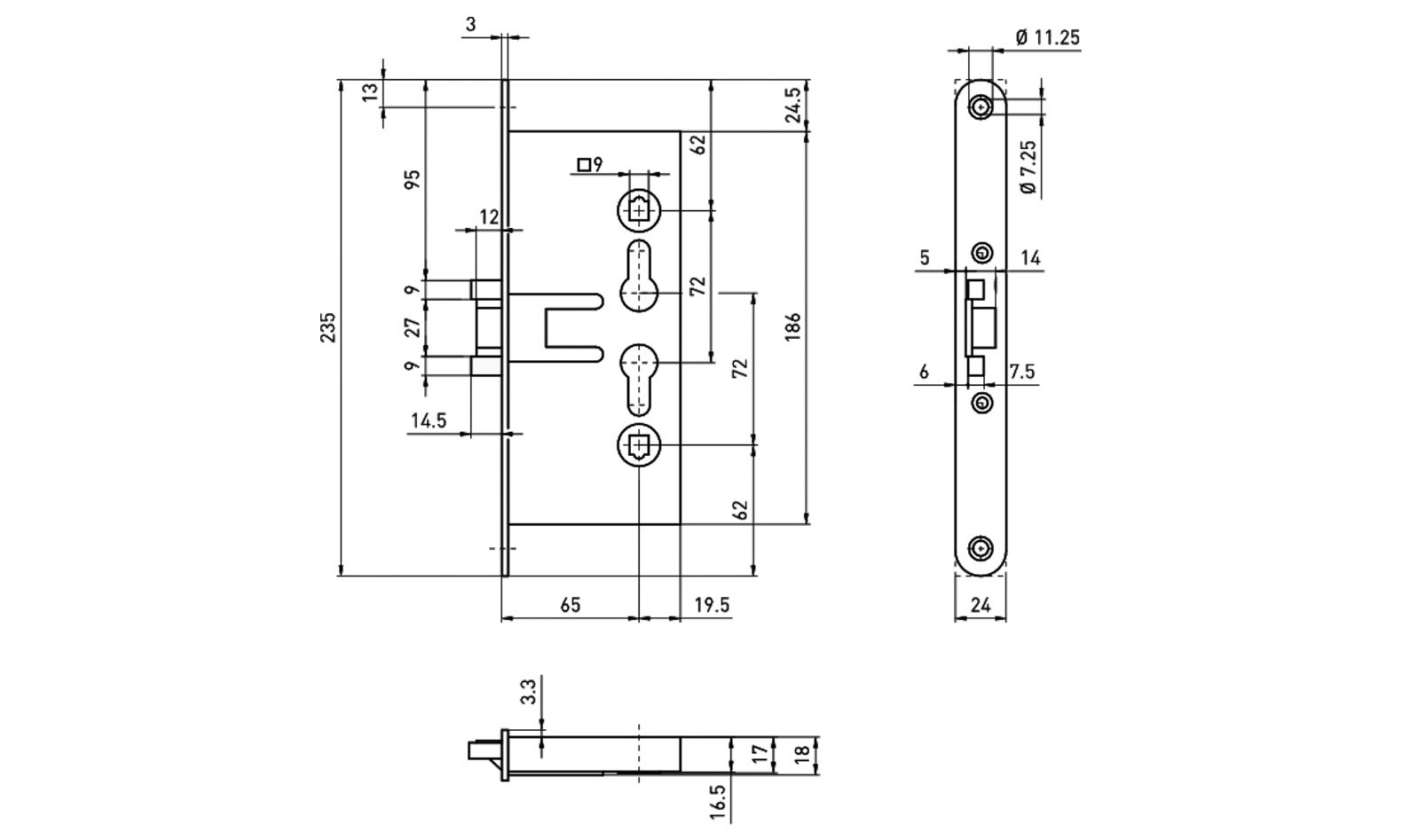 BMH Einsteckschloss PZW 72/65/24/9mm DIN rechts