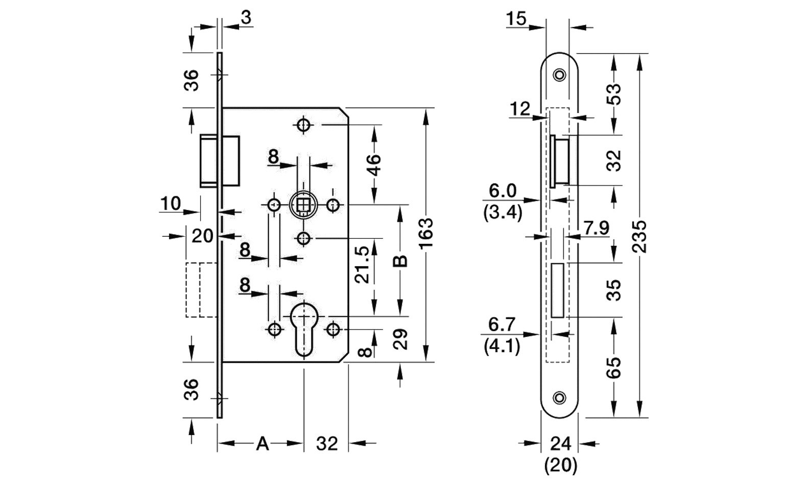Einsteckschloss PZ3 rund 55/20/72mm DIN rechts