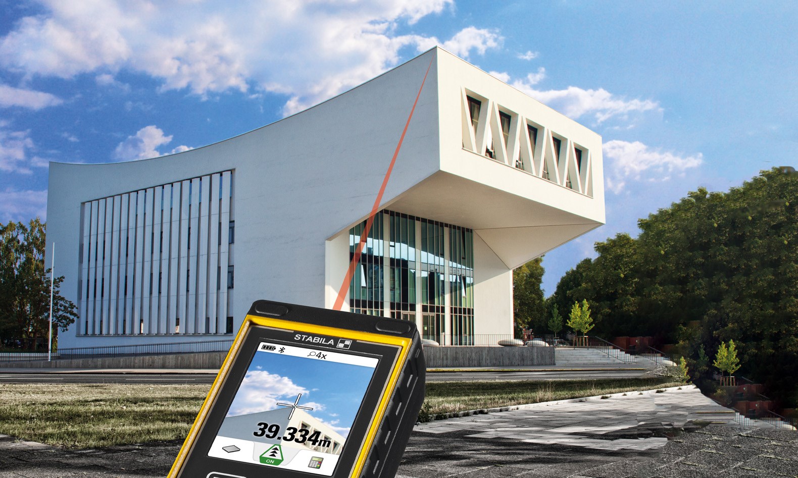 Ideal für den Außenbereich, eingebaute Kameradisplay mit Fadenkreuz und Zoomeffekt ermöglicht punktgenaue Messungen auf große Entfernungen. Integrierte Bluetooth®Smart 4.0 Technologie zum Übertragen der Messdaten. Mit 18 Messfunktionen, schlagfestes Gehäuse, Messgenauigkgeit +/-1 mm, Messbereich 0,05 - 200m, Schutzklasse IP54. Inklusive 2x AA Batterien und Gürteltasche.
