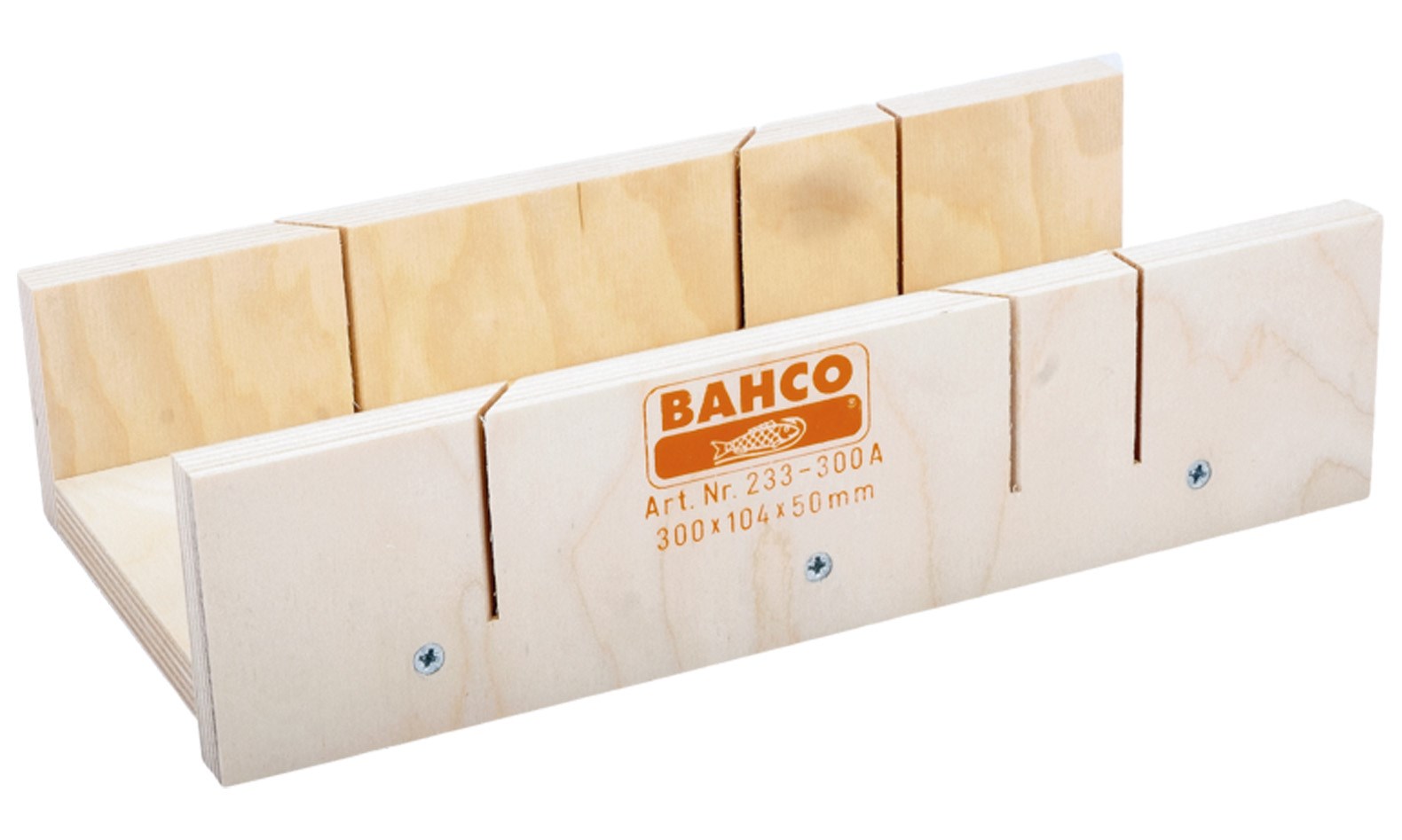 Aus laminiertem Holz zum links- und rechtshändigen Sägen im Winkel von 45°, 90° und 135°. Mit verstärkten Wänden für verbesserten Halt der Lade.