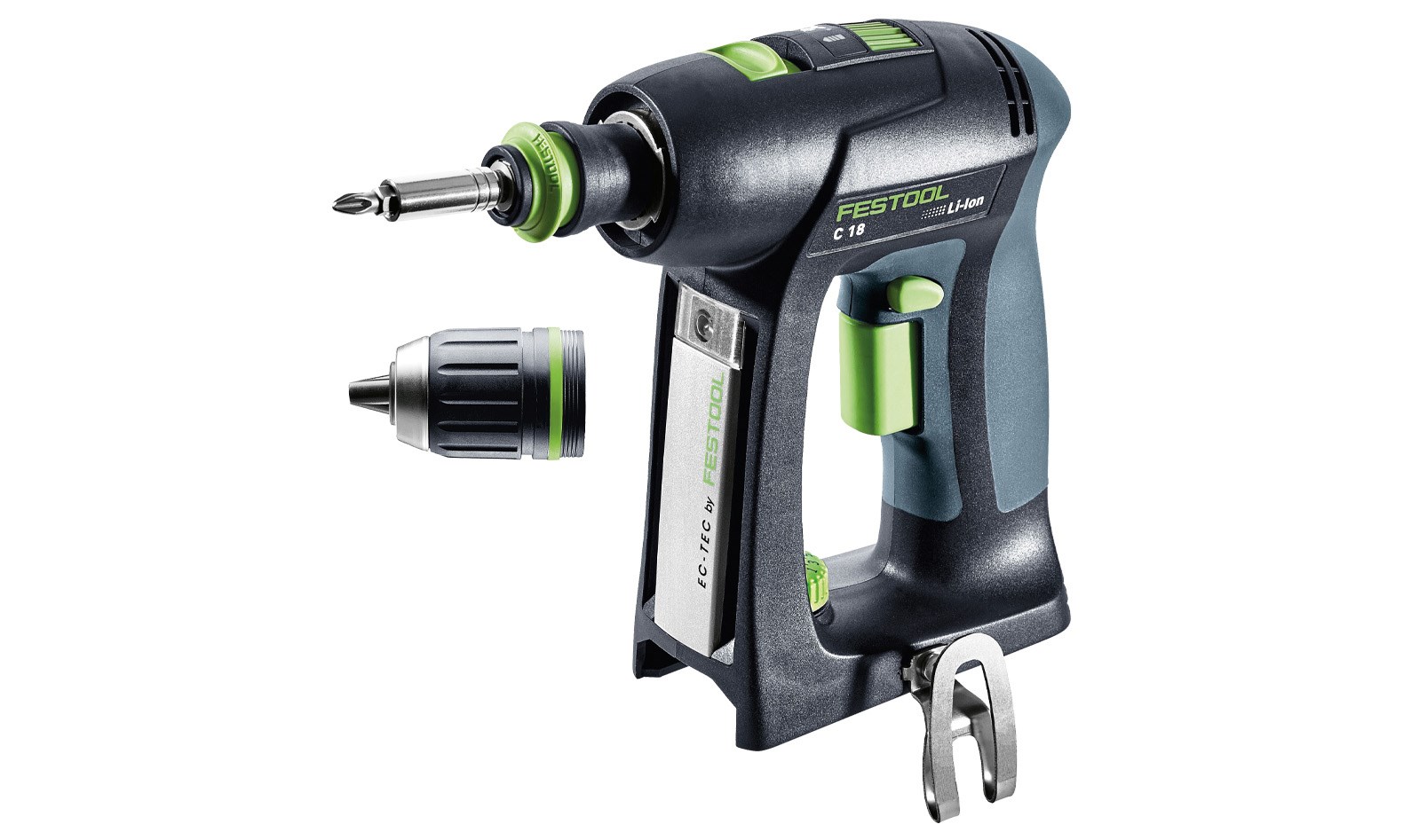 Für volle Flexibilität beim Bohren und Schrauben: vollelektronische Drehmomenteinstellung, CENTROTEC Schnellwechselsystem, Winkel- und Exzentervorsatz sowie Tiefenanschlag lösen jede Bohr- und Schraubanwendung. Die Kombination aus Li-HighPower Akkupack und bürstenlosem und somit wartungsfreiem EC-TEC Motor machen den Akku-Bohrschrauber C 18 leicht, langlebig und ausdauernd. Für einen sorglosen Alltag sind Akkuschrauber und Akkupack mit dem Festool Service rundum abgesichert. Erhältlich in der einzigartigen C-Bauform oder