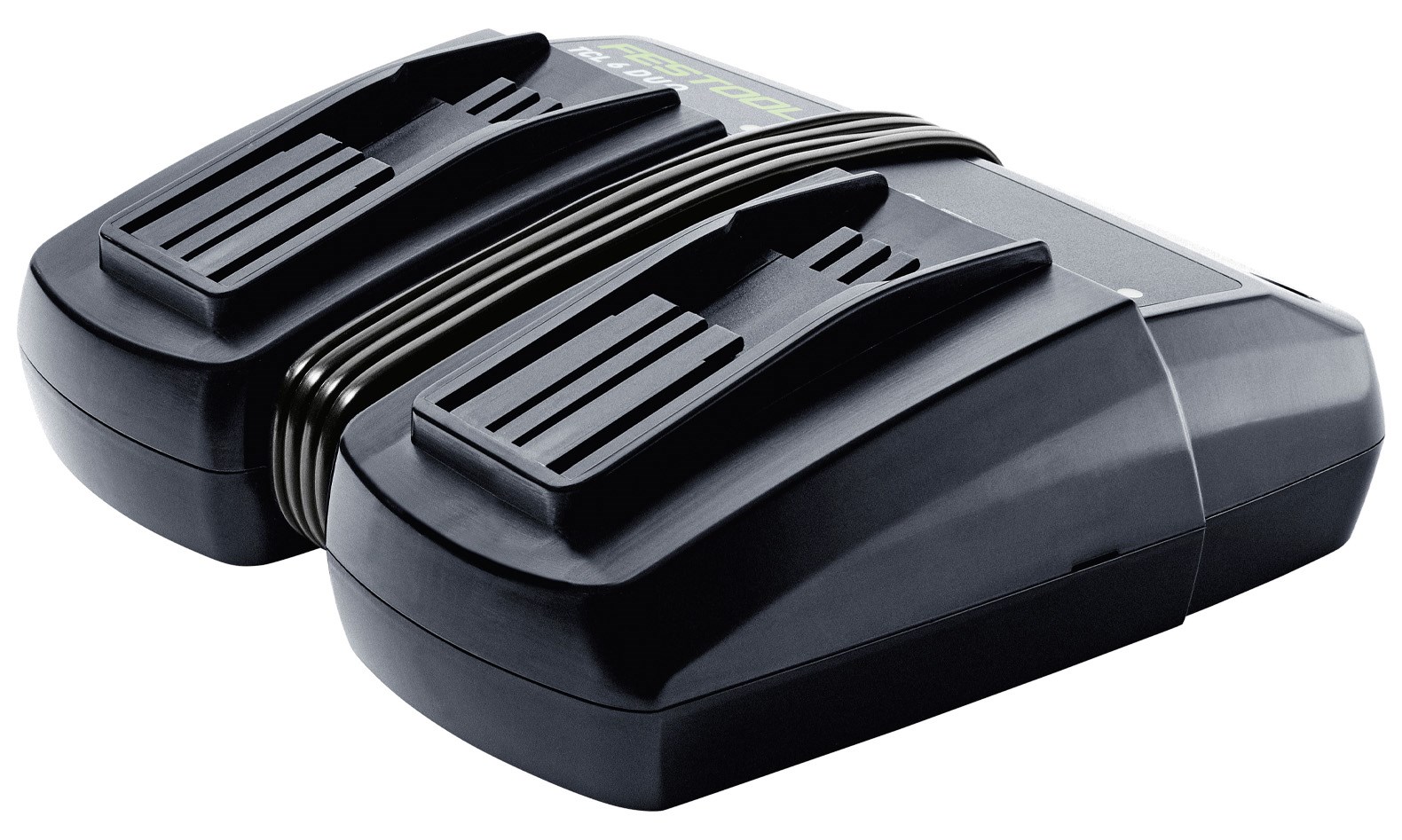 Ermöglicht das gleichzeitige Laden von zwei (unterschiedlichen oder gleichen) Akkupacks, LED-Anzeige zur Darstellung der Restladezeit und des Ladestatus für alle Festool 18 V-Akkupacks (inklusive Ergo-Akkupack, außer CXS/TXS), max. Ladestrom 2 x 6,0 A, Airstream.