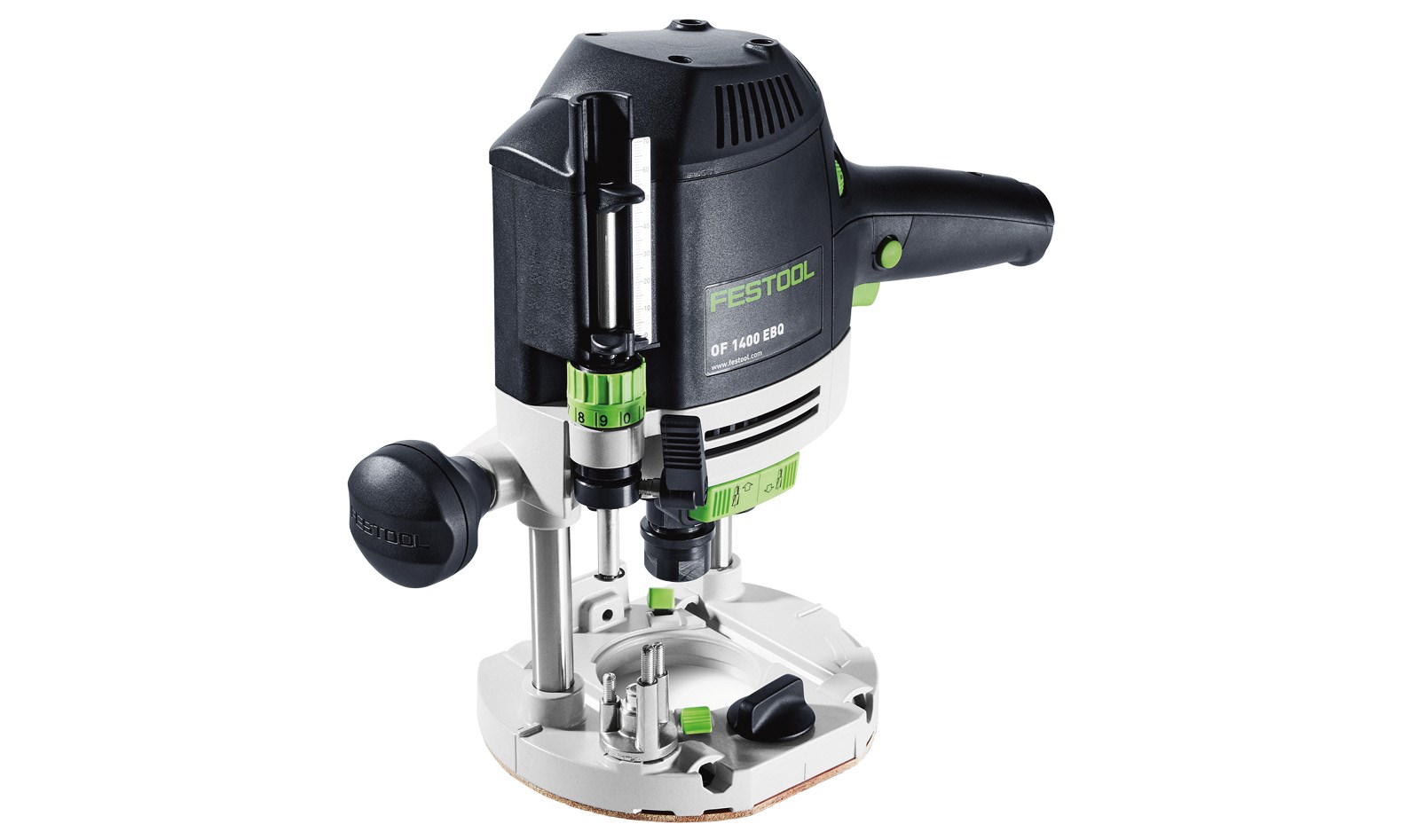 Die ideale Verbindung von Kraft und Komfort. Verwindungssteife Grundplatte durch beidseitig geklemmte Führungssäulen mit 70 mm Fräshub. Komfort-Fräserwechsel mit Wippe und Ratschenprinzip, einfache und 1/10 mm-genaue Einstellung der Frästiefe sowie werkzeugloser Kopierringwechsel.