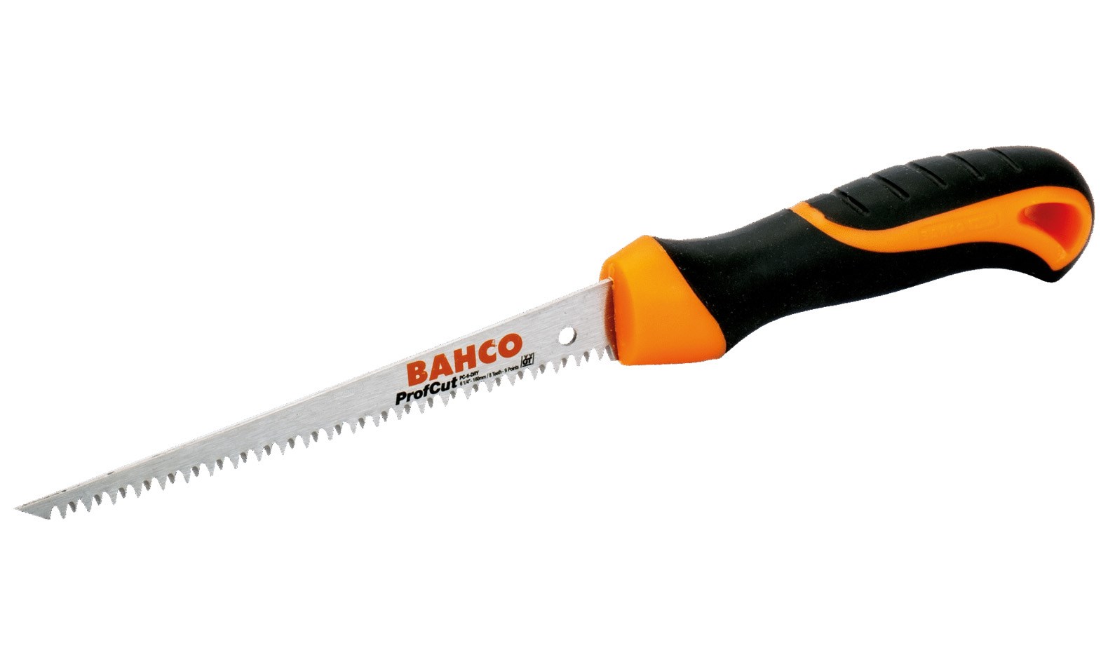 Zum Schneiden von Löchern in Gipskarton, die robuste Klinge mit dreifach geschliffenen Zähnen endet mit einer extrem scharfen Spitze, die sich in Verbindung mit dem komfortablem Zwei-Komponenten-Griff, hervorragend zum Einschlagen in den Werkstoff eignet, die schneidende Klinge kann anschließend hervorragend zum Herausschneiden der gewünschten Form verwendet werden.