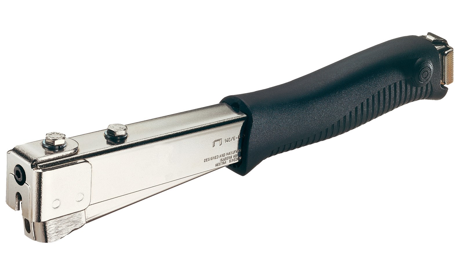 Der Original Hammertacker R11 aus Schweden, gut ausbalanciert, rutschfester ergonomischer Griff, robuste Konstruktion komplett aus Stahl, ideal für arbeitsintensive Jobs, z.B. die Befestigung von Dach- und Isoliermaterialien, 2 Jahre Garantie, Gerätegröße 40x305x56mm, Ladekapazität 170 Klammern, Heftklammern Typ 140 6-10mm.