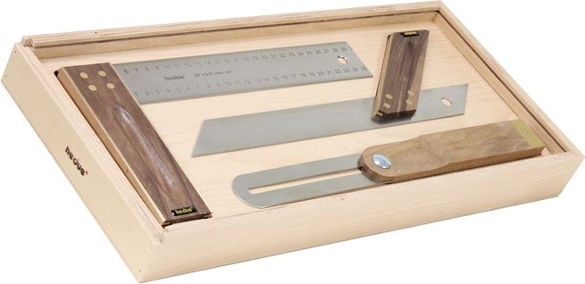 Bestehend aus drei hochwertigen Mess- und Anreißwerkzeugen (Schmiege, Tischlerwinkel