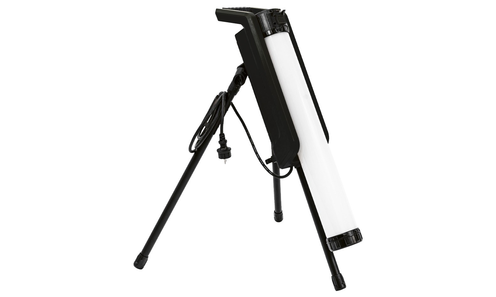 Diese LED-Säule strahlt ein leistungsstarkes (10.000 Lumen) kaltweißes Licht (5000K) aus. Das Gehäuse besteht aus stoßfestem Polycarbonat und ist gegen Staub und Spritzwasser geschützt (IP54), dank ihres innovativen Designs hat diese LED-Säulenleuchte einen Abstrahlwinkel von 360°. Das liegt daran, dass die LED-Chips in einem kreisförmigen Muster in der Leuchte angebracht sind, Der 230-Volt-Anschluss erfolgt über das mitgelieferte 2 m lange Kabel H07RN-F 3G1,5 mm². Der LED-Turm ist an der Unterseite mit einer Steckdose ausgestattet. Diese ermöglicht den Anschluss einer weiteren Leuchte, eines Elektrowerkzeugs oder eines anderen Geräts, wodurch zusätzliche Verlängerungskabel überflüssig werden. Außerdem befindet sich an den Beinen des Stativs ein Kabelmanagementsystem für eine saubere Verkabelung. Die Leuchte und das Stativ lassen sich zur effizienten Aufbewahrung zusammenklappen und sind mit einem Griff für den bequemen Transport ausgestattet.