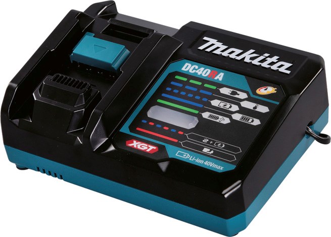 Ein Schnellladegerät für alle 40 V max. XGT-Akkus. Mit wählbarer Melodie, als Signal für die Beendigung eines Ladevorgangs. Ausgestattet mit zwei Lüftern für ein besonders schnelles Laden der XGT-Akkus. Kann an die Wand montiert werden. Zusammen mit dem Ladeadapter ADP10 (nicht im Lieferumfang) können 18 V LXT-Akkus geladen werden.