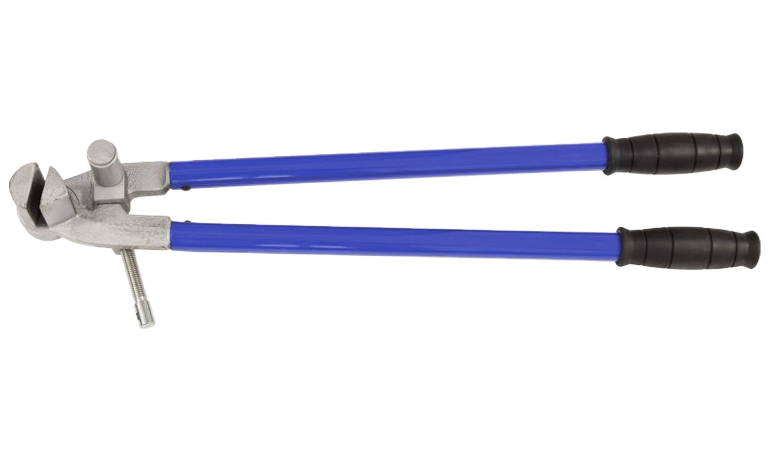 Für die Montage von Dachrinnen Rinnehaltern, für Materialstärken bis 40x6mm, Stahlrohrschenkel, mit Rolle, rutschfeste Gummigriffe, Länge 830mm.