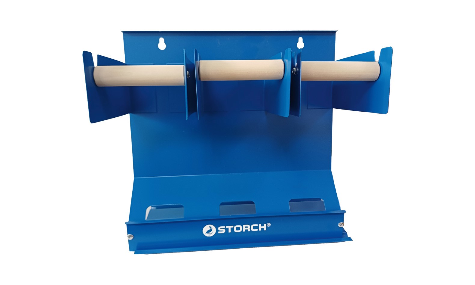 Rollenhalter für unsere SSK Aktion mit 3 Schleifpapierrollen. Der Rollenhalter kommt zerlegt.