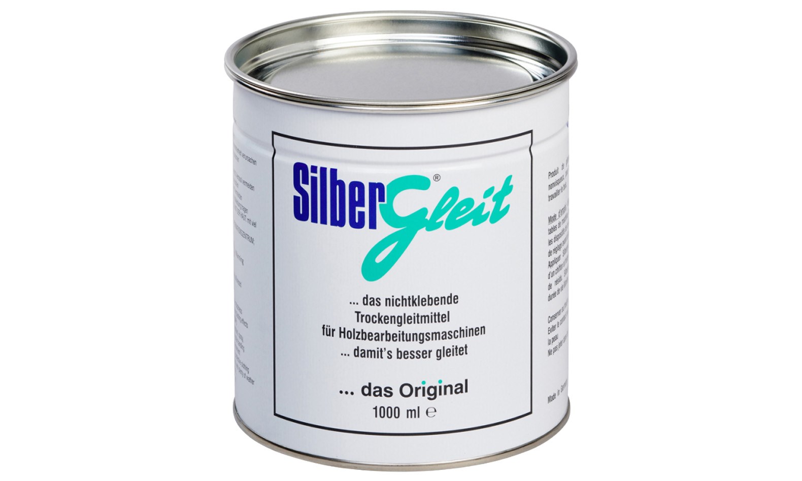 Trockengleitmittel Silbergleit in patöser Form, abriebfestes, wasserabweisendes Trockengleitmittel, grapht- und silikonfrei, bildet einen unsichtbaren und trockenen Gleitfilm, hinterlässt keine Rückstände auf dem zu bearbeitenden Holz
