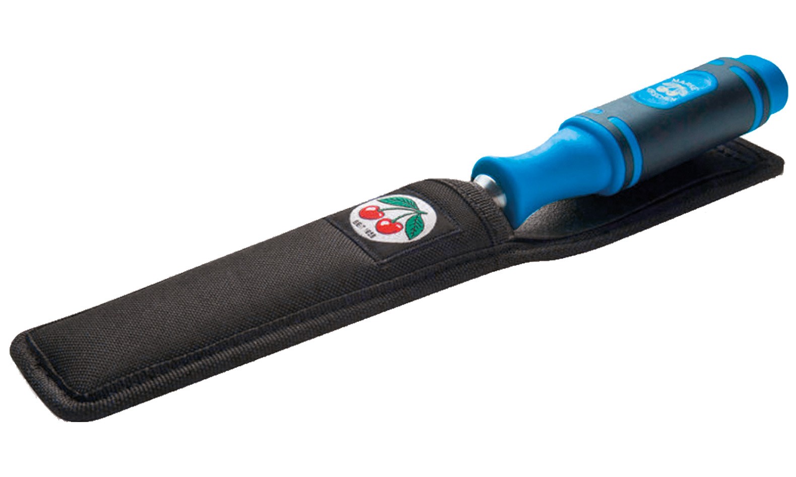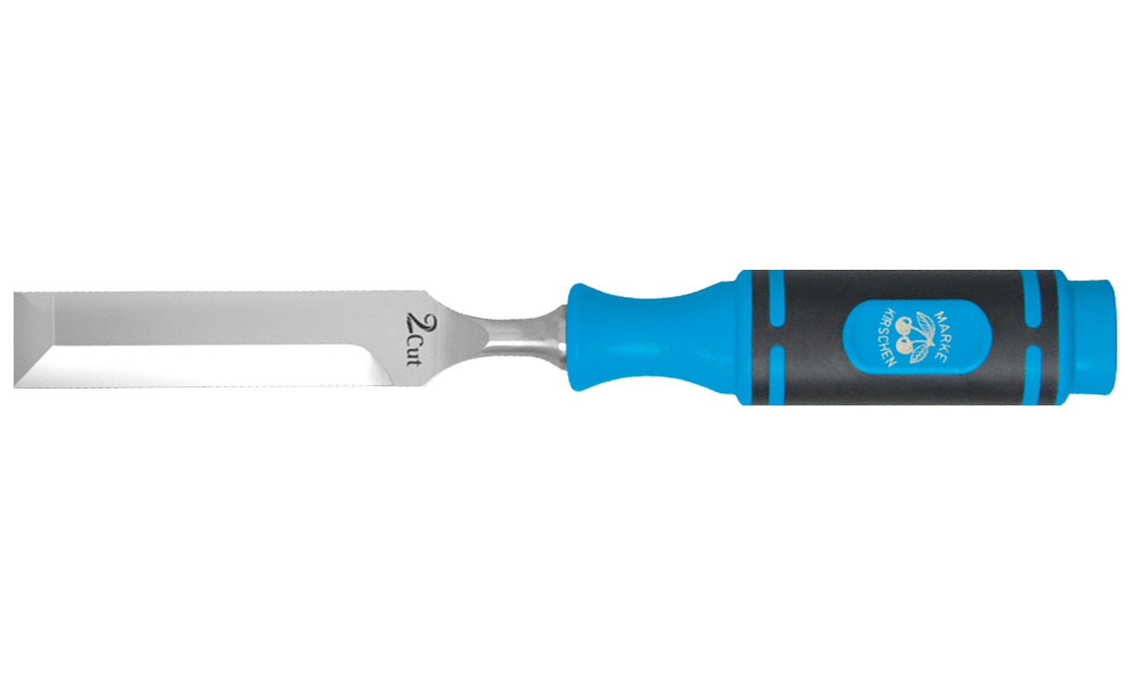 Stechbeitel mit zwei Schneiden, mit abgeflachtem 2-Komponentenheft, im Mikrofaser-Holster, Frontschneide 26 mm für stemmende, hebelnde Arbeiten, Seitenschneide extra lange 90 mm für alle schneidende Anwendungen, für Tischler, Dachdekcer, Schreiner, Zimmerleute, Trockenbauer..., Rücekn gehärtet - kann mit Kunststoff- oder Holzhammer genutzt werden.