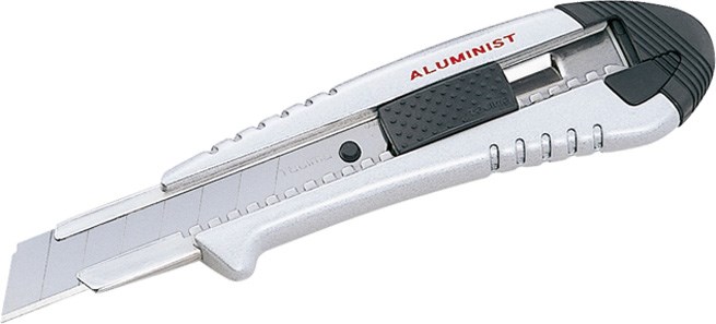 Spezialgriff aus Aluminium-Druckguss mit 18mm breiten Klingen. Bestückt mit zusätzlich 2 Klingen im klingenlager des Griffs. Robuste Klingenführung aus rostfreiem Edelstahl.