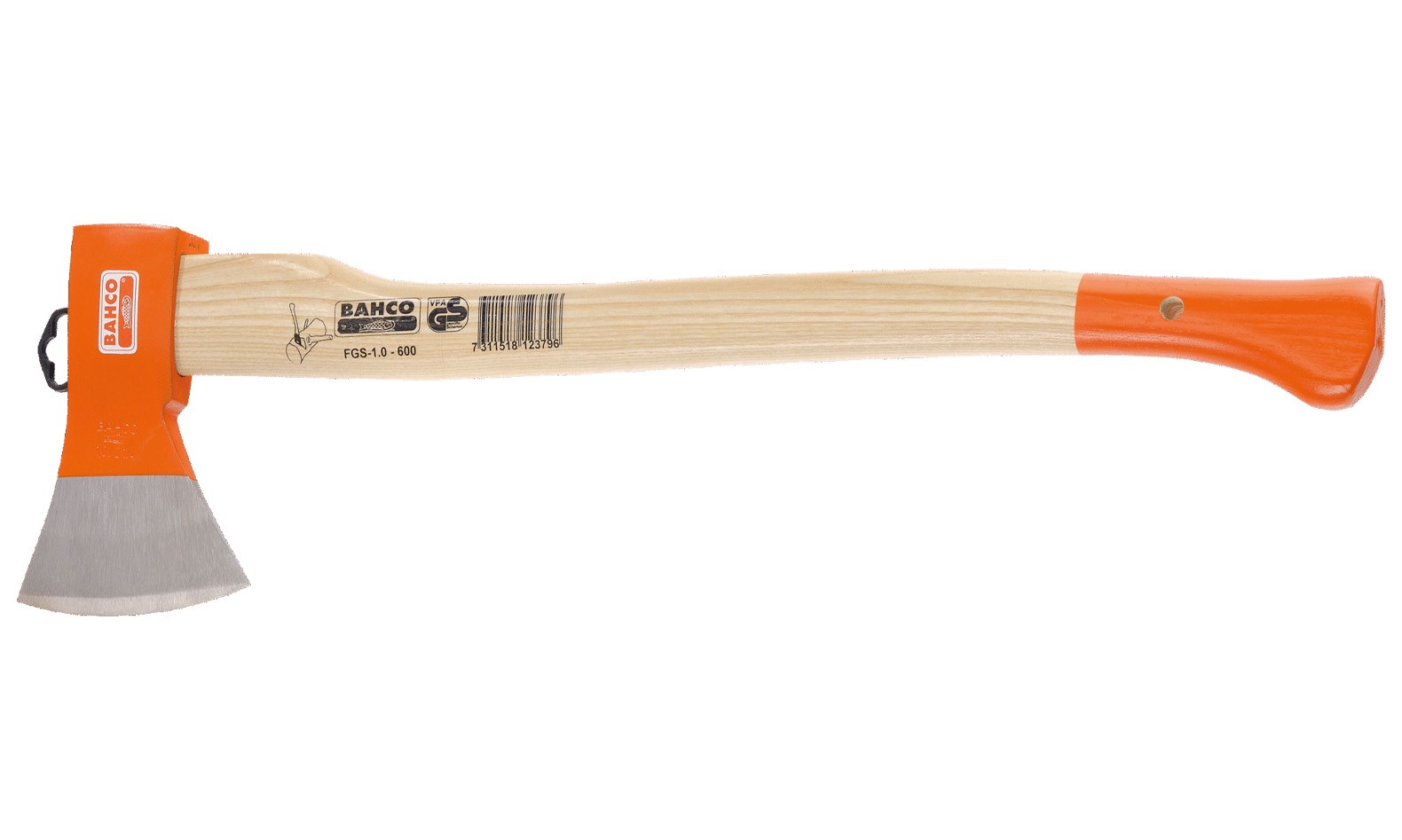 Stiel aus gekrümmtem Eschenholz gemäß DIN 5132, Form B, Mit FSC-Zertifizierung, 8-mm-Aufhängeöse (Euronorm) am Stielende zur einfachen Aufbewahrung, Kopf mit schmaler, breiter Schneide ermöglicht leichteres Eindringen in den Stamm und einen sauberen Schnitt, Gesichert mit gezahntem Kunststoffkeil und Metall-Ringkeil, mit Aufhängeöse gemäß Euronorm, die schmale Schneide erleichtert das Eindringen in das Holz, Kopf aus hochlegiertem Werkzeugstahl, Komfortable Handhabung durch gekrümmten Eschenstiel.