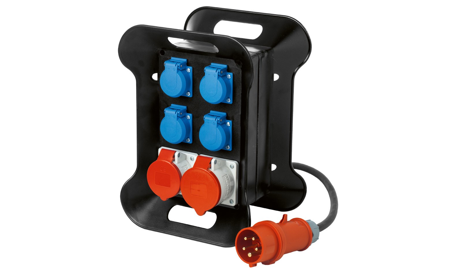 Ausgang: 2 x CEE 5-polig 400 V / 16 A, 6h, 4 x Schutzkontaktsteckdose 230 V / 16 A, Belastbar bis 11 kW, geprüft nach VDE 0620-1, IEC 60309, EN 61439-4, DIN EN 50525-2-21-21.