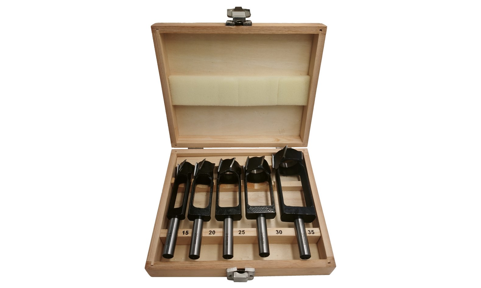 Set besteht aus Bohrern Ø 15, 20, 25, 30, 35 mm. Zur Herstellung von runden Zapfen oder Holzdübeln sowie zum Auffüllen von ausgebrochenen Ästen oder zum Reparieren von Holzbeschädigungen in Verbindung mit dem passenden Kunst-/Forstnerbohrer.